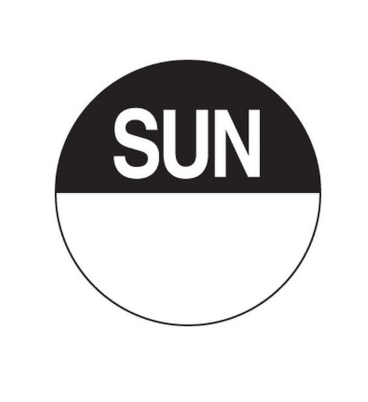 10780 DAYDOT DAY OF WEEK 24MM CIRCLES SUNDAY 1000/ROLL