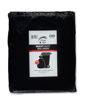 BIN LINER 240LTR HEAVY DUTY WIZZ - BLACK (CTN 200)