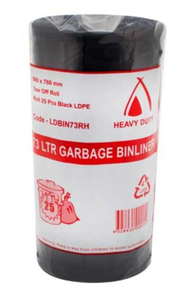 BIN LINER 73LTR BLACK HEAVY DUTY ROLL 25/ROLL