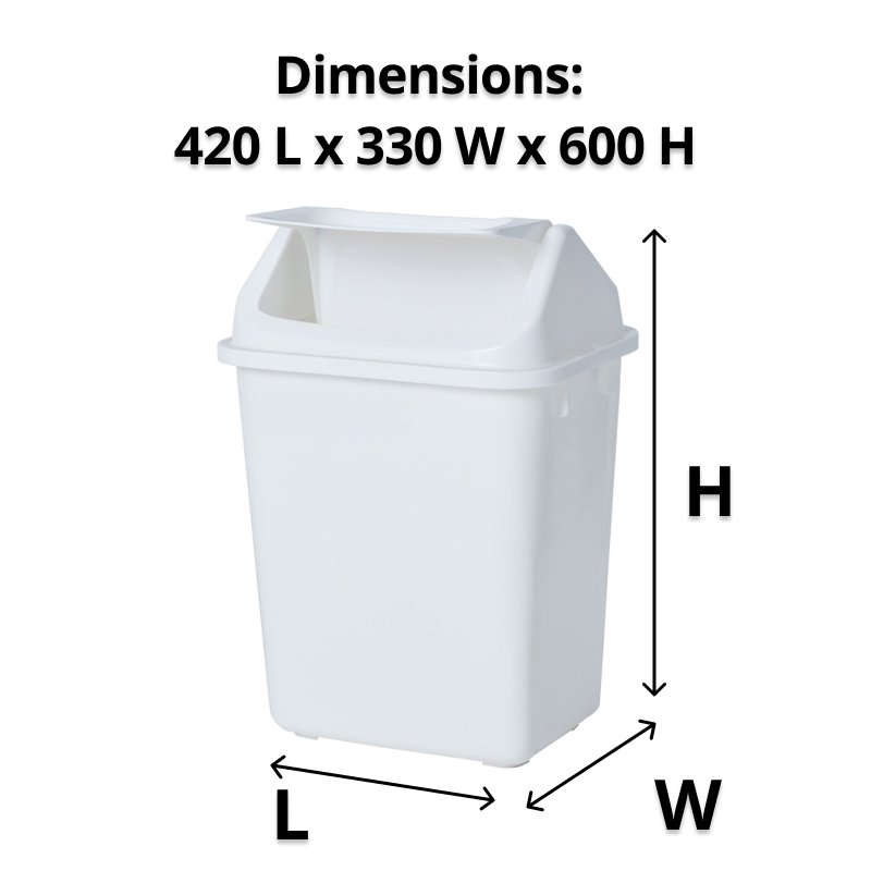 GARBAGE BIN, 38LTR RECTANGULAR SWING TOP WHITE
