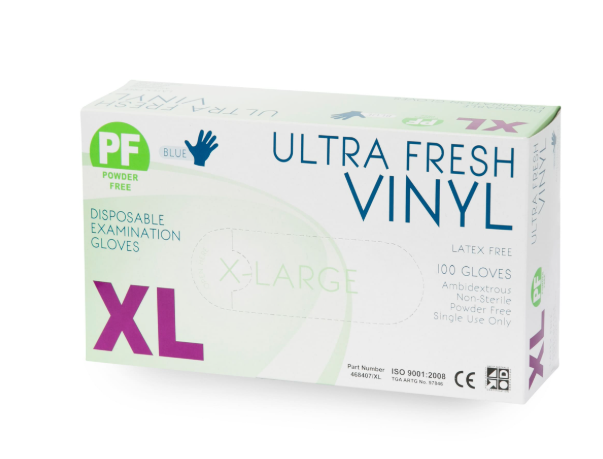 GLOVE, VINYL BLUE P/F XL (100PKT) 10 PKTS PER CTN